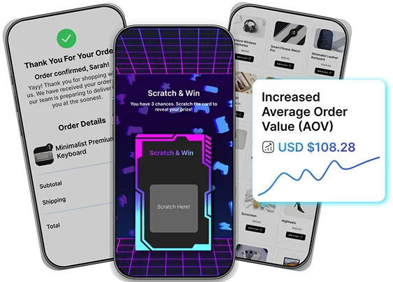 Reward every $ spent with chances to win prizes. Increasing average order value and customer lifetime value through engaging post-purchase games.