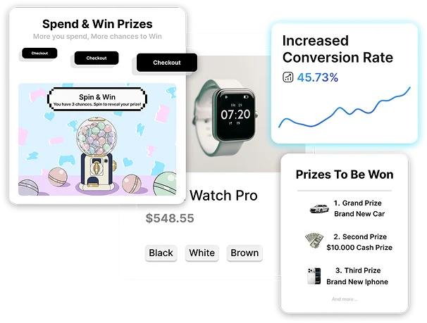 Customers Are Incentivised to Spend. More Customers see exciting prizes and clear spend-to-win rules while browsing your store, motivating them to add more to cart.