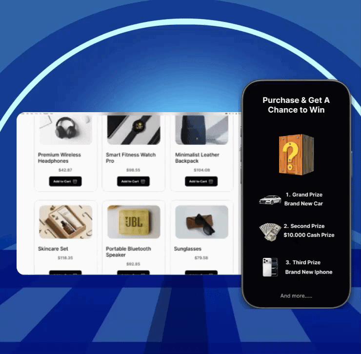 Encourage customers to spend more by rewarding every $dollar spent with extra chances to win prizes. Turning excitement into higher revenue per checkout.